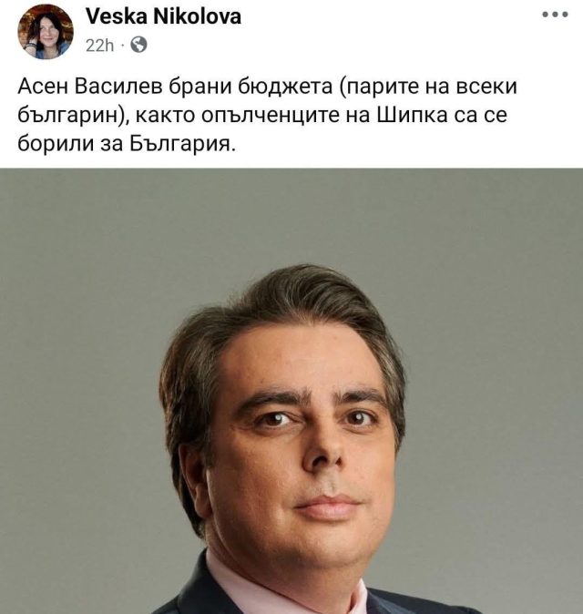 Веска Николова, титулуваща се служител район „Западен“, сравни профаления финансов министър Асен Василев с… опълченците на Шипка.