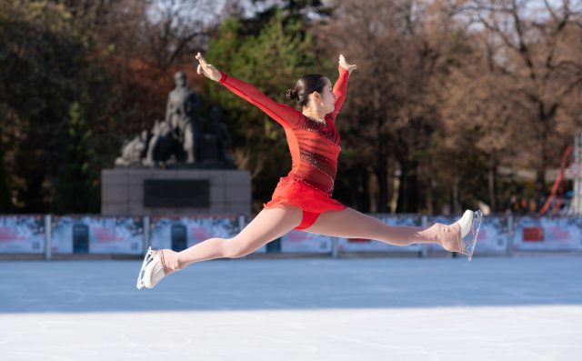 Първите кънкьори, които се качиха на атракциона, бяха момичета от спортен клуб „Ледени искри“. Грациозните дами впечатлиха присъстващите с красиви фигури и пируети на кънки.