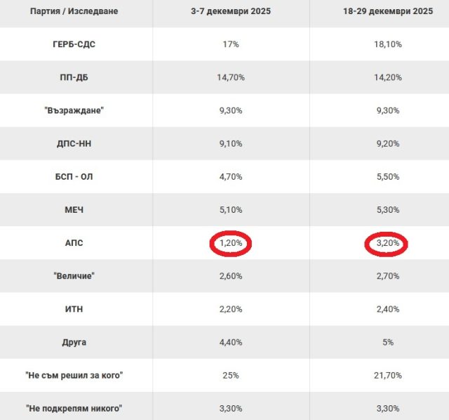 В него имаше скрита новина, която Добромир Живков не пожела да обяви – за има-няма две седмици през декември АПС почти е утроила подкрепата си от 1,2% на 3,2% (снимка 2).