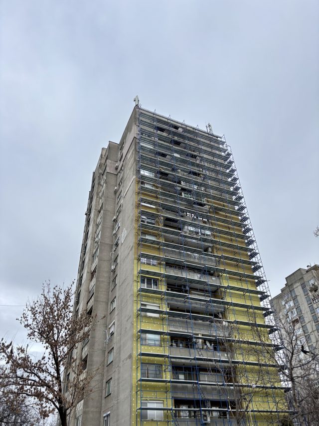 Продължават дейностите по саниране на блока на ул. „Славянска“ № 93, който е сред сградите, включени в проекта за повишаване на енергийната ефективност в многофамилните жилища.