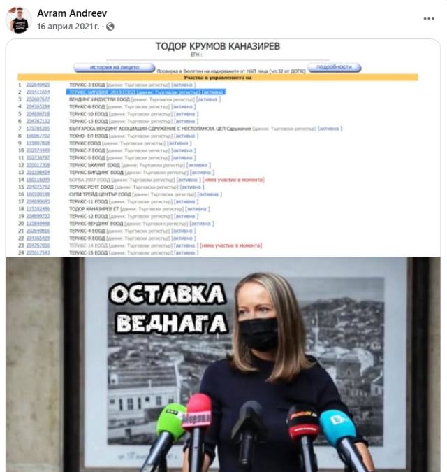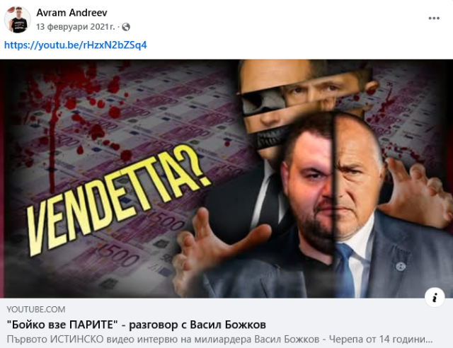 Профилът му във фейсбук е пълен с оплювателски материали срещу Бойко Борисов, Делян Пеевски, Дани Каназирева и т.н.