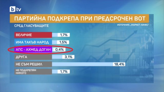 Преди месец от „Маркет линкс“ дадохте на АПС на Доган прогноза от 3,2% от гласуващите с ярко изразена тенденция за ръст, сега им давате ОСЕМ пъти по-малко – 0,4%, при това без грам обяснение на подобен социологически феномен!
