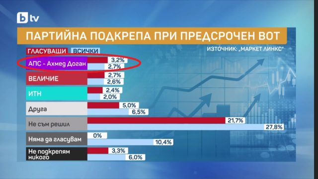 Преди месец от „Маркет линкс“ дадохте на АПС на Доган прогноза от 3,2% от гласуващите с ярко изразена тенденция за ръст, сега им давате ОСЕМ пъти по-малко – 0,4%, при това без грам обяснение на подобен социологически феномен!