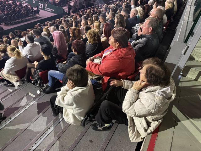 Арена 8888 в очакване на Румен Радев, който закъснява с 45 минути вече.
