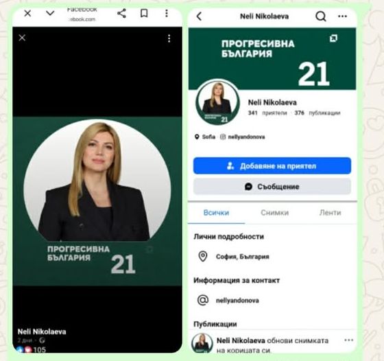 Моментално след публикацията в АФЕРА кандидат-депутата на Радев – Нели Андреева промени името си в профила си във Фейсбук от Нели Андреева на … Нели Николаева, ползвайки бащиното си име, вместо фамилията, за да не я свързват с журналистическото разследване на АФЕРА по време на предизборната кампания.