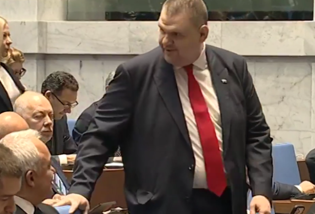 Маските паднаха още в първия ден на парламента. Борецът срещу модела „Пеевски“ – Иван Демерджиев, се кордиса лично до лицето на модела и не спря да му се хили мазно през цялото време на откриващата сесия на народното събрание.
